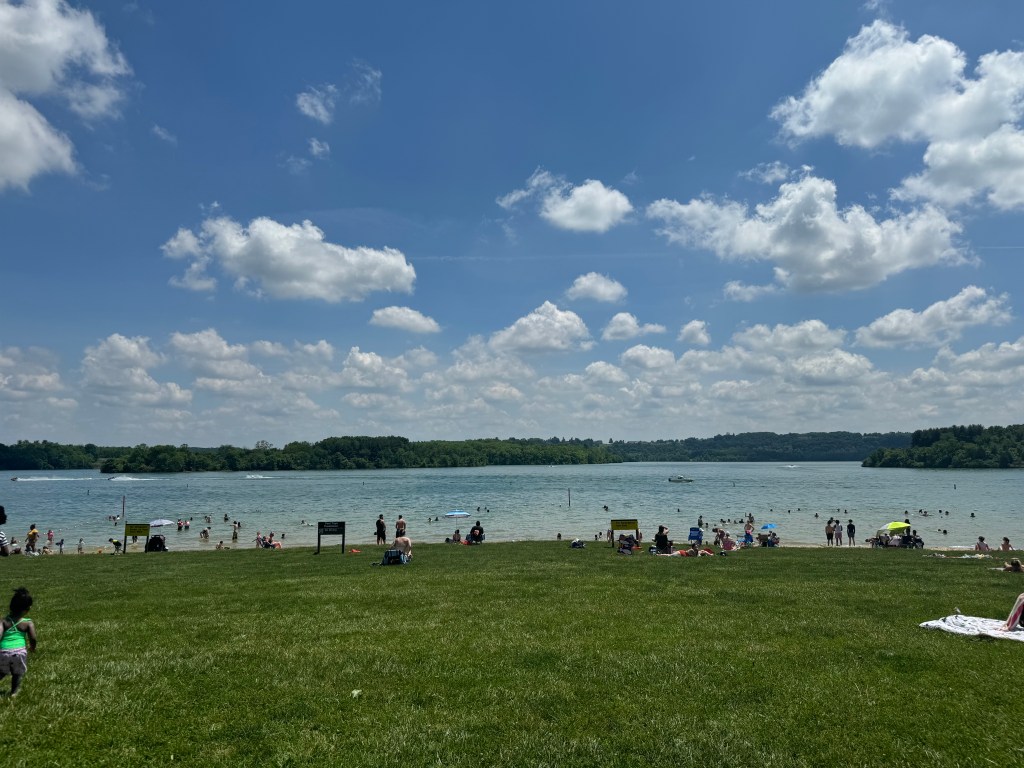 There’s a photo i took on my phone, as you can see this lake is very beautiful. And yes, the water is nice and clean. There were people on these things that looked like motors for the water, having lots of fun. The place wasn’t crowded at all, which we loved. Don’t get me wrong there was a lot of people cooking out and even having parties, the place is just that big. If I’m not mistaking, there’s also a hiking area.